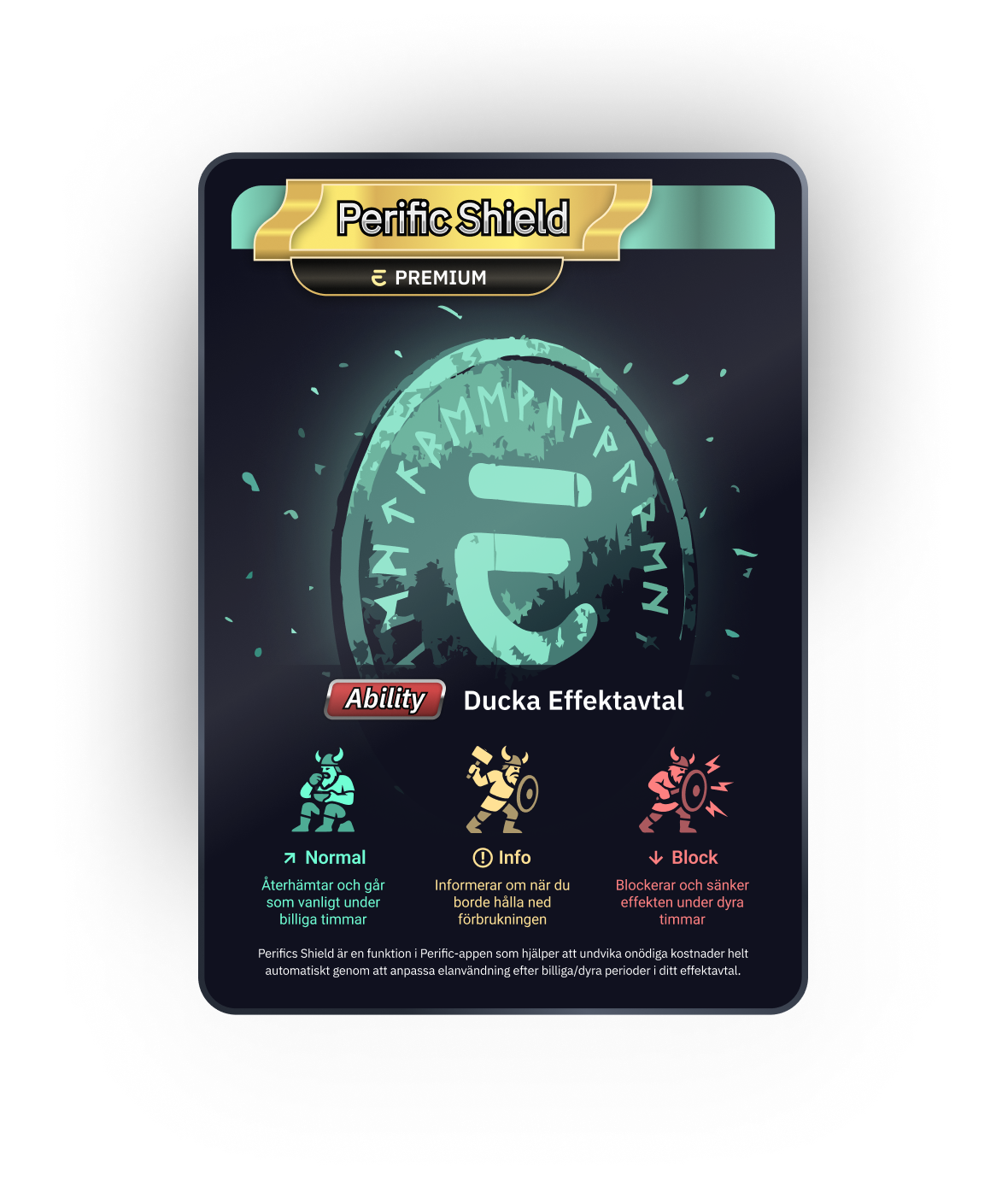 Perific Shield är en funktion i Perific-appen som automatiskt anpassar ditt effektuttag baserat på ditt effektavtal för att spara pengar. Shield aktiveras direkt i appen genom att ange ditt effektavtal, resten sköter vi automatiskt.